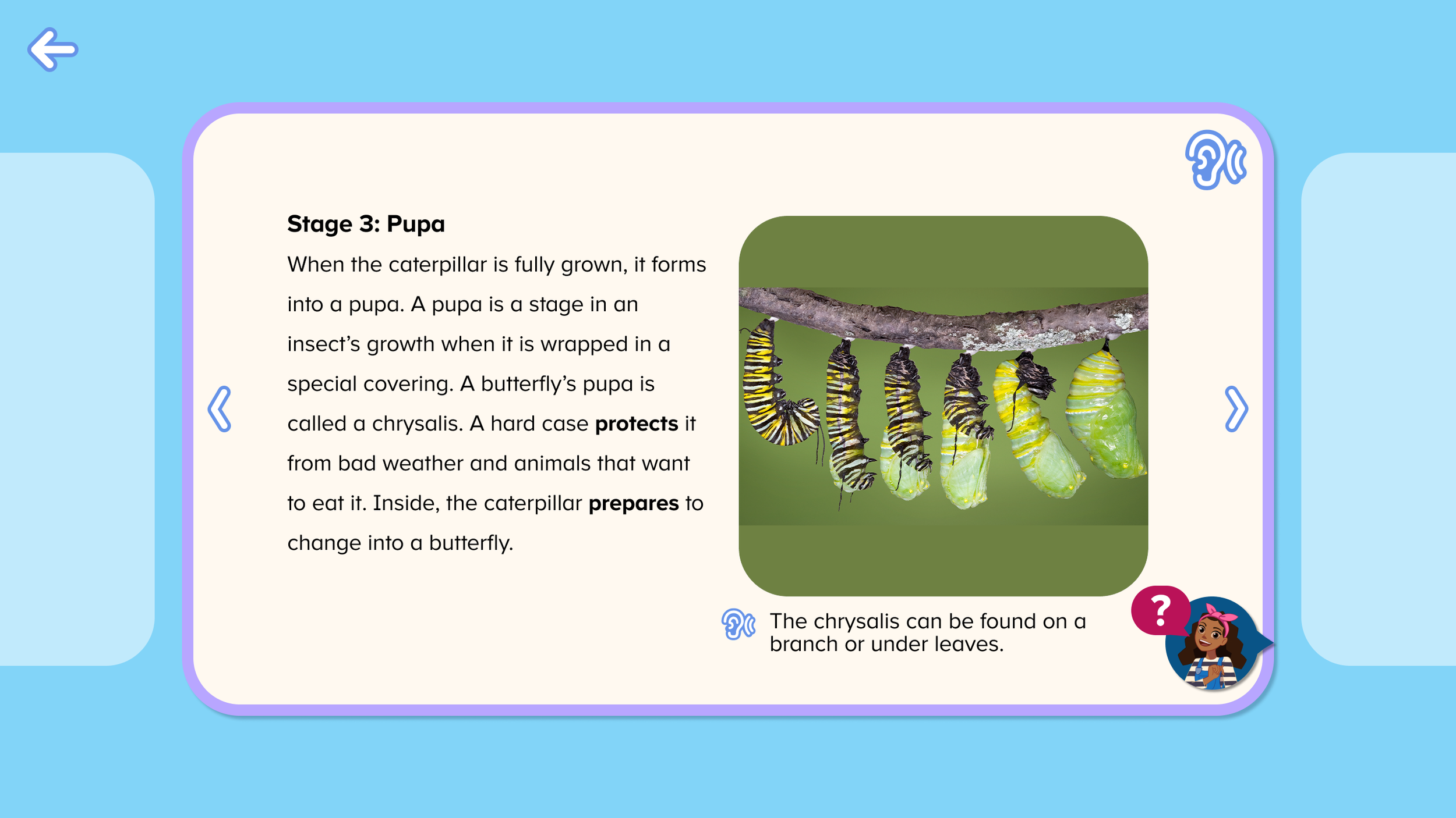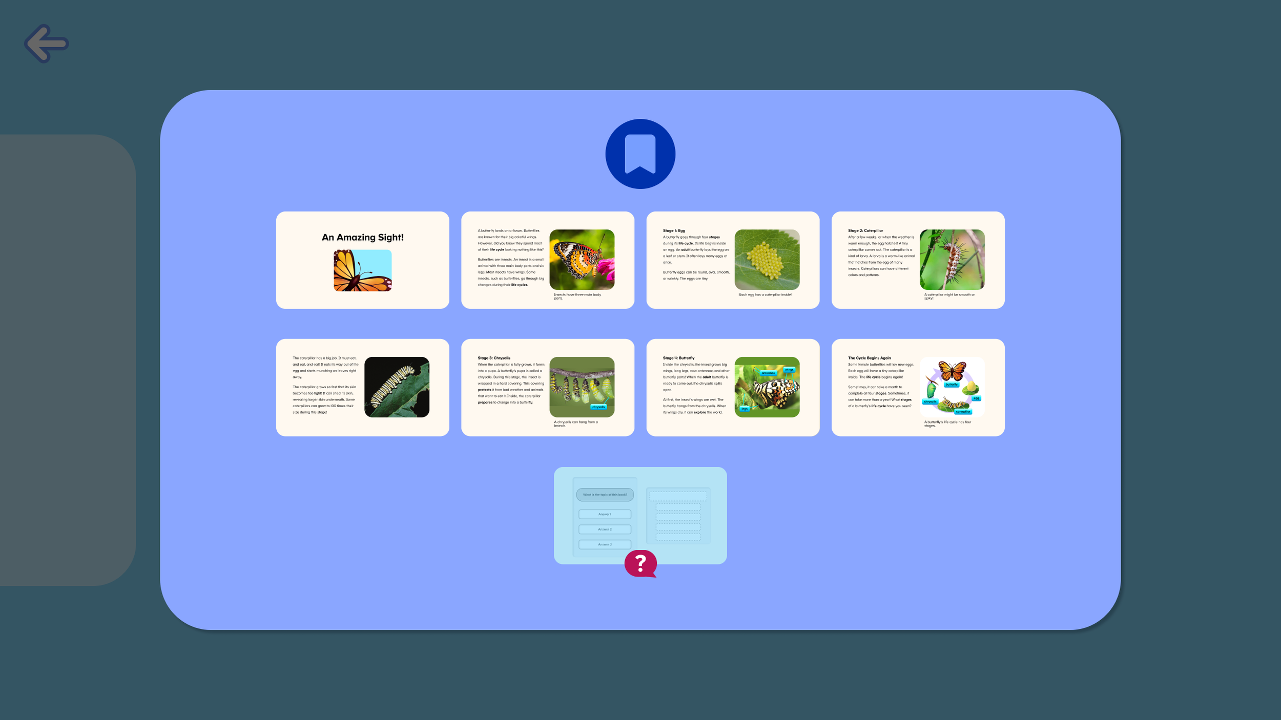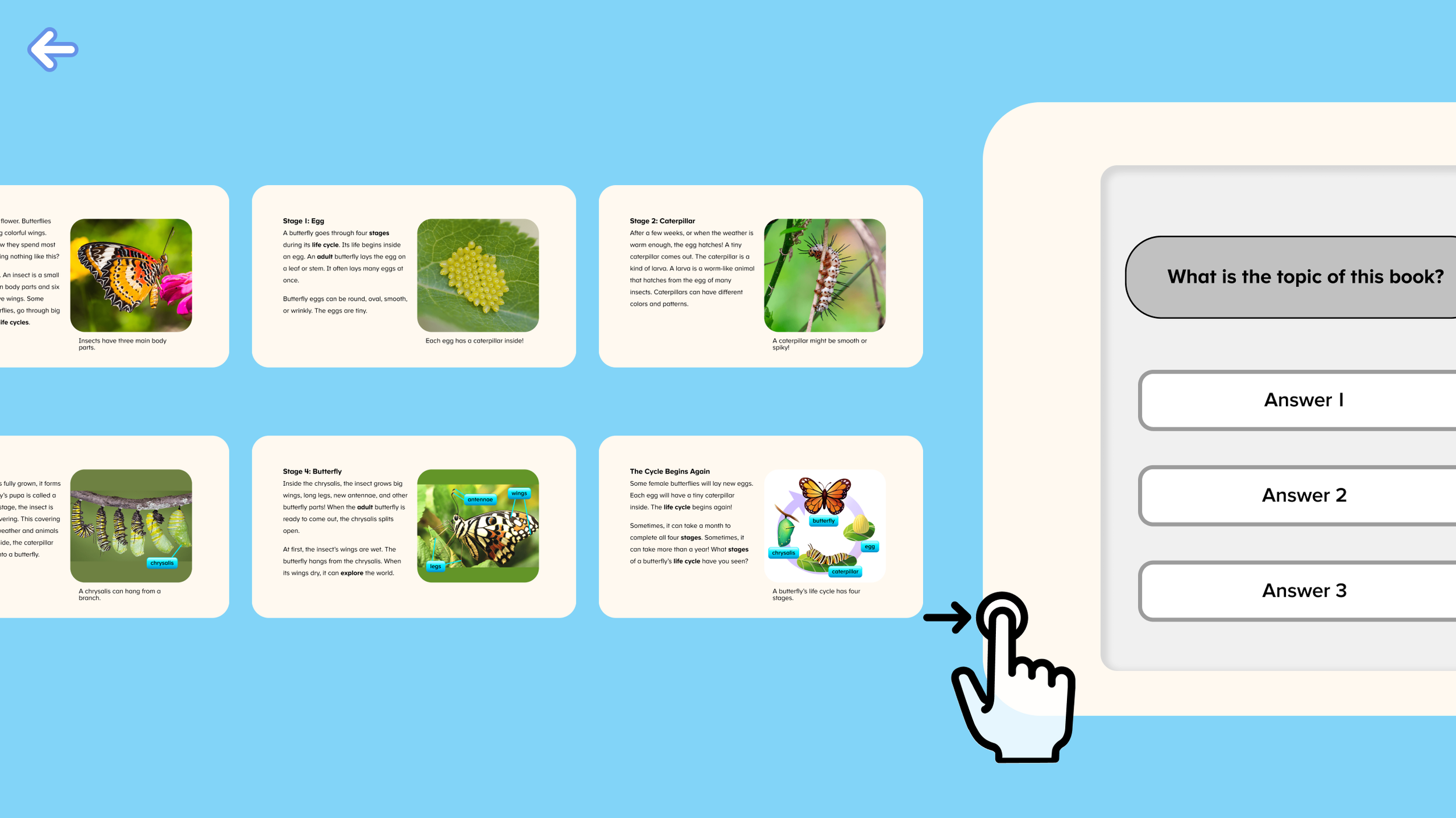 Our digital book experiences help students practice reading and test their comprehension. In order to properly assess a student’s comprehension, we should ensure that it is only testing their ability to understand text, not their ability to remember it. So we needed to design our quizzes in a way that would allow students go to back into the book.